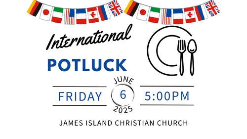 Join us for dinner on Friday night, June 6th, from 5:00PM-7:00PM as we kick off Pentecost weekend with an International Potluck for our James Island and surrounding community! It's completely free! But if you are able, please sign-up to bring a dish that represents another country that is near and dear to your heart. We will be outside in the courtyard of James Island Christian Church (12 Sawgrass Road) and have 5 sampling tents that represent different regions around the world.