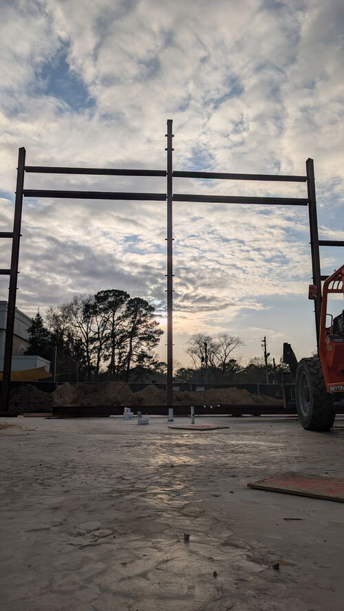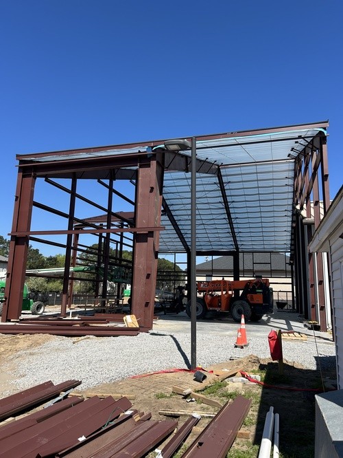 Next Steps - There is a lot of work planned for next week. The building will start going vertical as the Pre-Engineered metal Building starts getting constructed. The inside of the gym will be undergoing a lot of work as well - installing new lights, installing the sprinkler system, flipping the HVAC ducts to support the unit move to the other side of the building, and installing double doors in the back corner of the gym by the drainage pond. The building will start coming together next week!